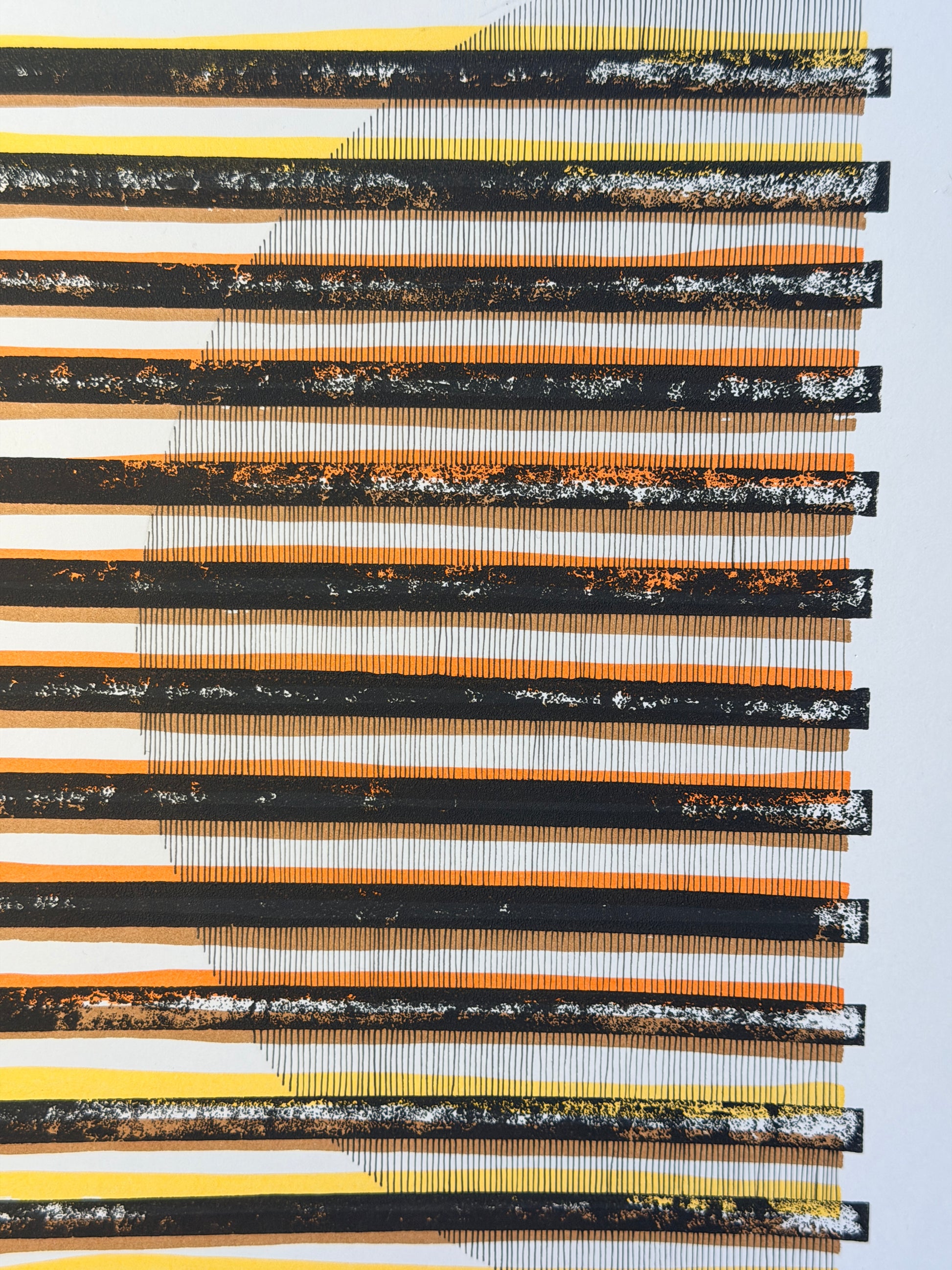 This original, one-off piece was created using experimental lino printing, letterpress, a 0.1 fineliner and some marker pens. It's on A3 white 220gsm card and is a one off piece of art.
